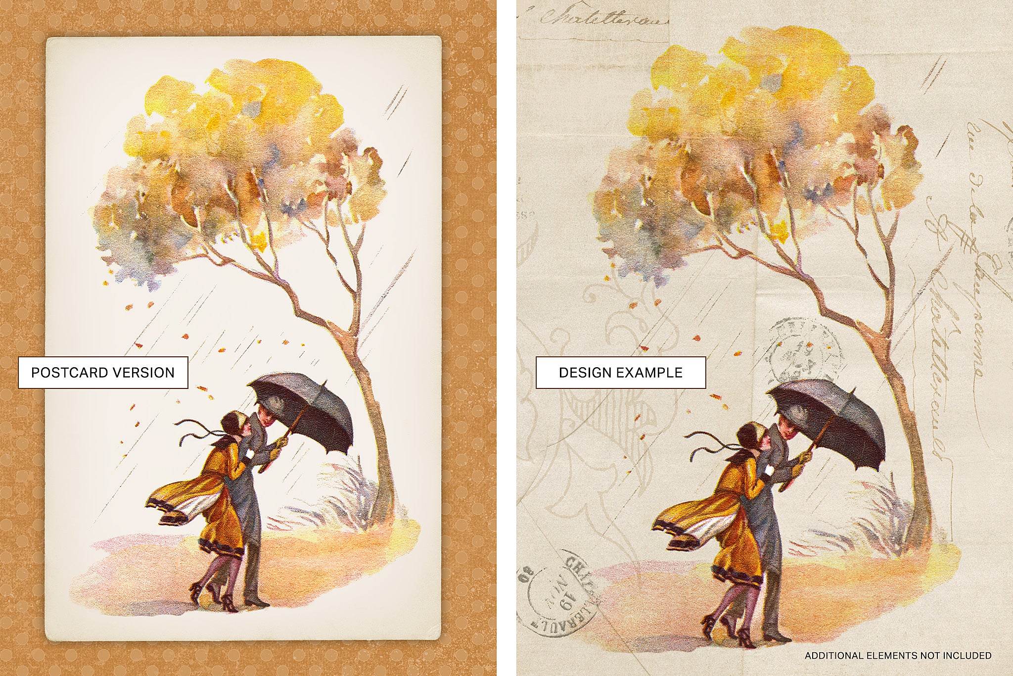 Each piece has been professionally scanned at 2× the original size and meticulously retouched to preserve its vintage character while ensuring quality resolution for today’s design standards. To give you maximum creative freedom, most illustrations come with valuable variations—original postcard versions, clean edits, and transparent background cutouts—ready to drop into your work without extra effort.