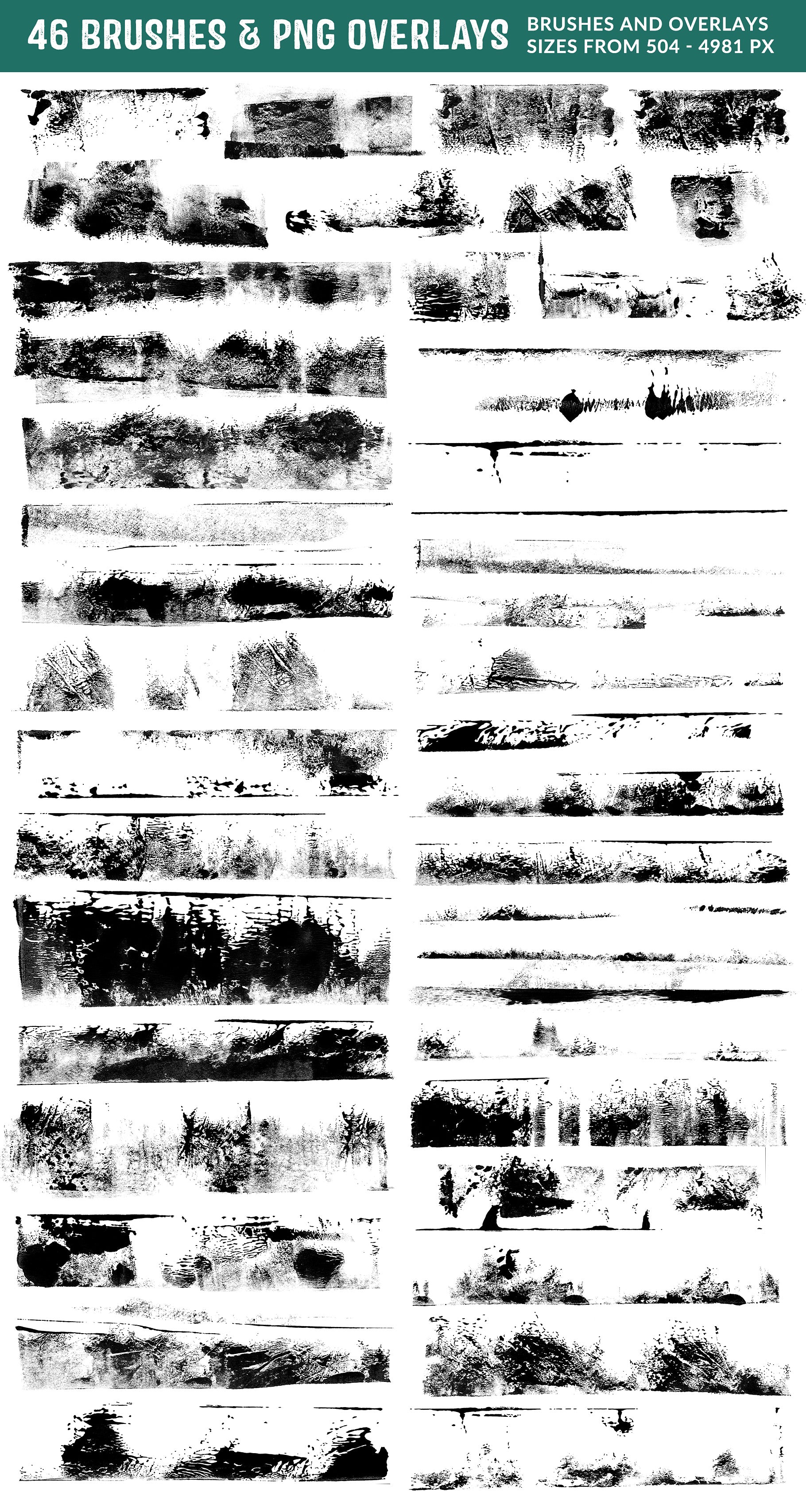 Bring bold, painterly texture to your digital artwork with this set of 46+ high-resolution Photoshop brushes and matching PNG overlays. Created from expressive brayered gouache paint, these brushes deliver raw, artistic edges, strips, and textures that layer beautifully for endless creative effects.