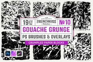 These square Photoshop brushes capture the organic texture of gouache applied to crumpled paper, delivering distinctive crackled, marbled, and batik-inspired effects. Each brush ranges from 3600 to 3800 pixels, providing substantial coverage for detailed digital artwork. Perfect for designers seeking authentic, hand-painted aesthetics without manual creation, these grunge brushes add depth and character to illustrations, backgrounds, and mixed-media compositions. Ideal for both professional and creative projects requiring textured, artistic finishes.