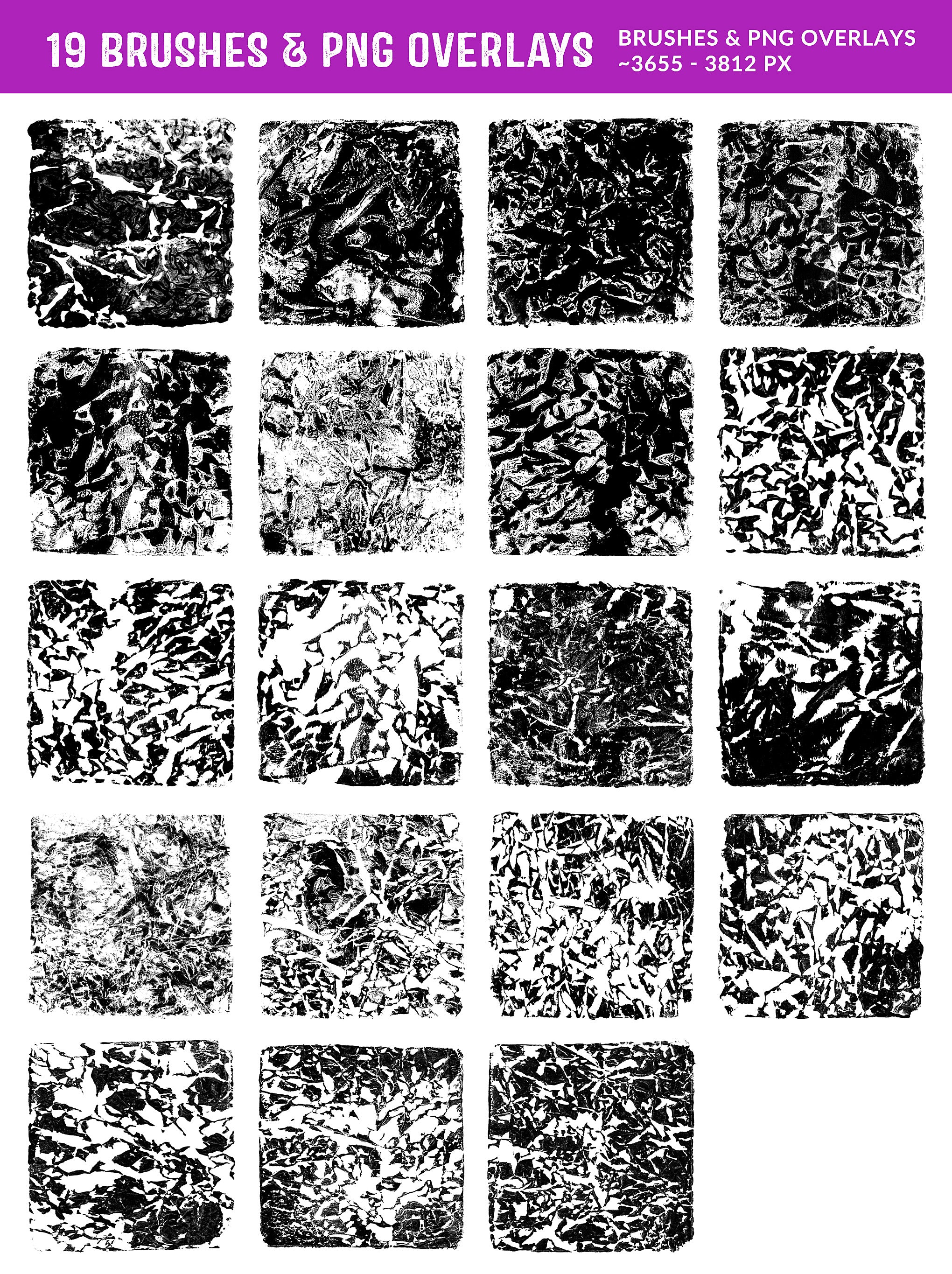 • 19 brushes: Each brush ranges from 3600 to 3800 pixels,