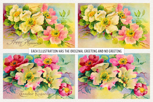These early 20th-century roses bring both vintage elegance and creative flexibility. Whether you want the authenticity of the original greetings or the open space of the text-free versions, you’ll find endless ways to make them your own.