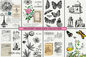 A professionally curated archive of high-resolution Vintage French ephemera and botanical illustrations, scanned from original antique sources and restored for modern creative work.